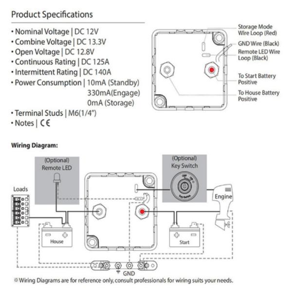 Power up your adventures with this heavy-duty dual battery isolator, designed for 12V systems and compatible with a wide range of vehicles including 4WDs, marine vessels, off-road rigs, RVs, trucks, caravans, and camping setups. Whether you’re on the road or offshore, it ensures both your main and auxiliary batteries stay in peak condition.